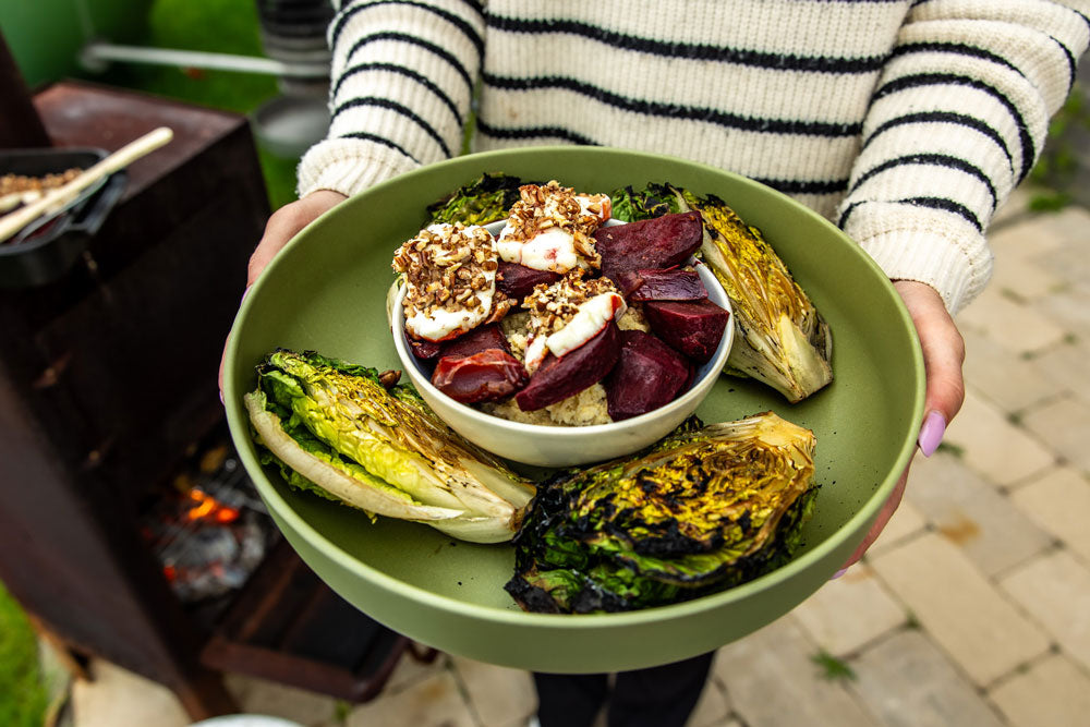 Beets with Halloumi and grilled little gems