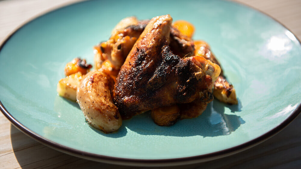 Outdooroven recipe: Roasted chicken with celeriac, carrot and potato