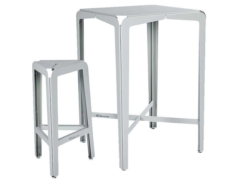 Crafted from 2mm galvanized steel and finished with a durable powder coating, the Bended Stool High is built to withstand the elements with minimal maintenance. The lower crossbar doubles as a footrest, offering extra comfort.