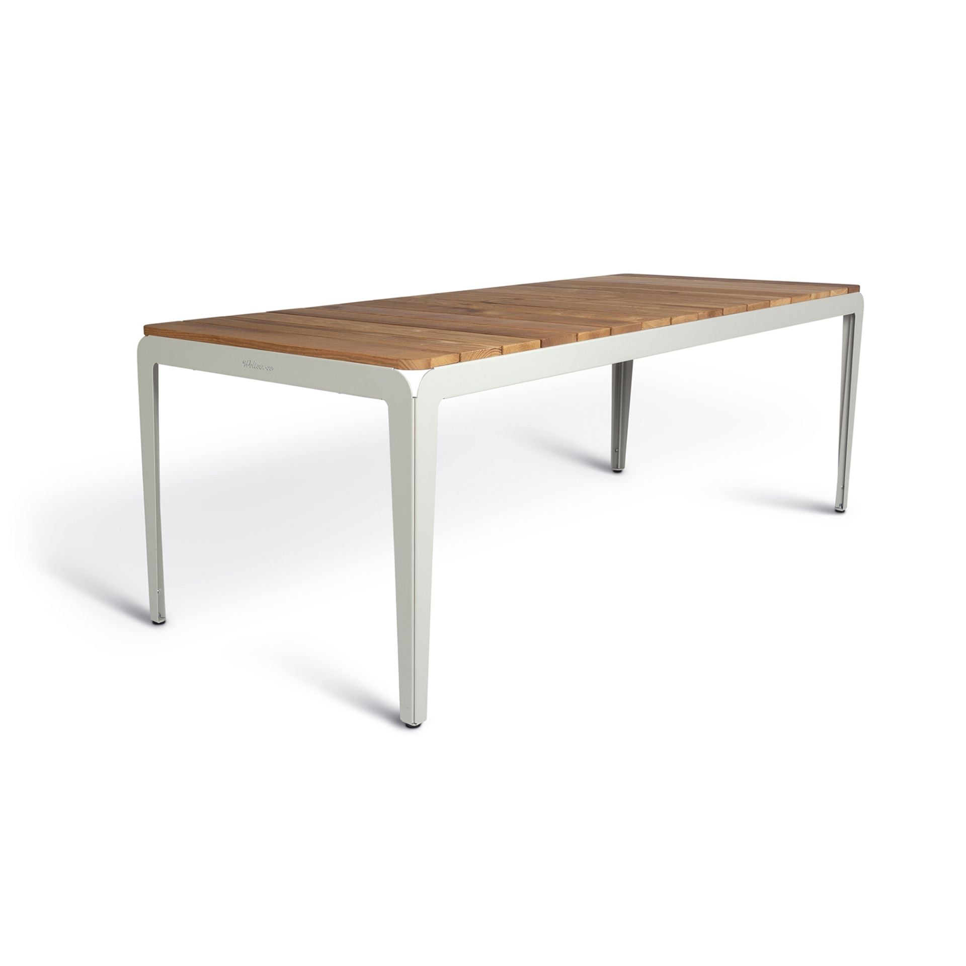 The Bended Table Wood features a sturdy steel frame, seamlessly bent at a 45-degree angle to conceal screws and sharp edges, maintaining the series' signature sleek aesthetic. Its innovative design ensures stability on any surface, providing a wobble-free experience. Available in Gray Blue, Pale Green, and Agate Gray.