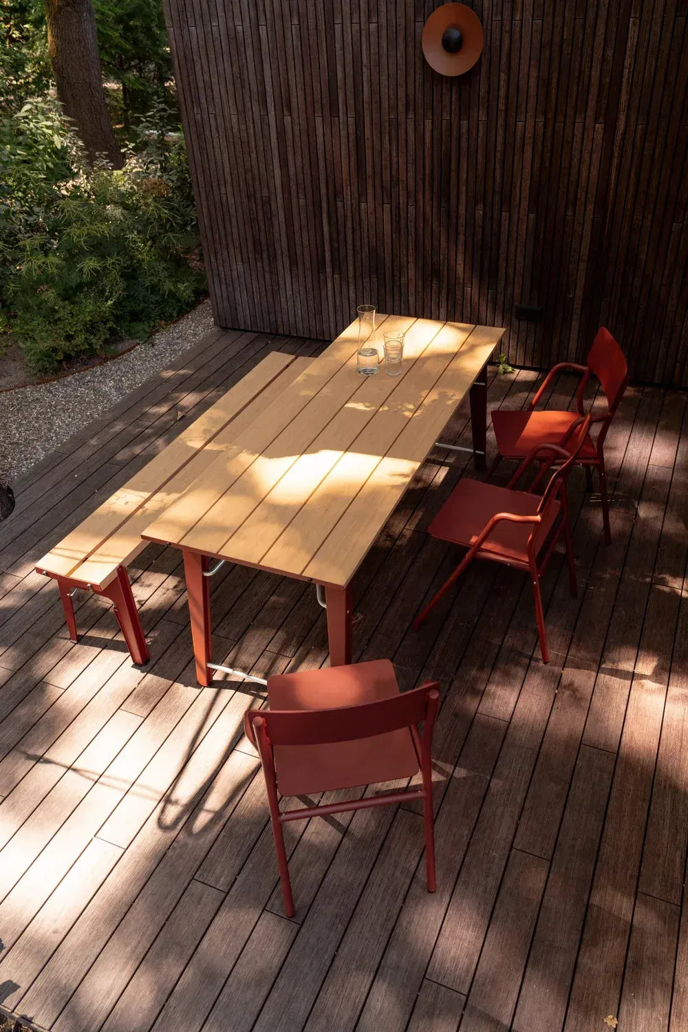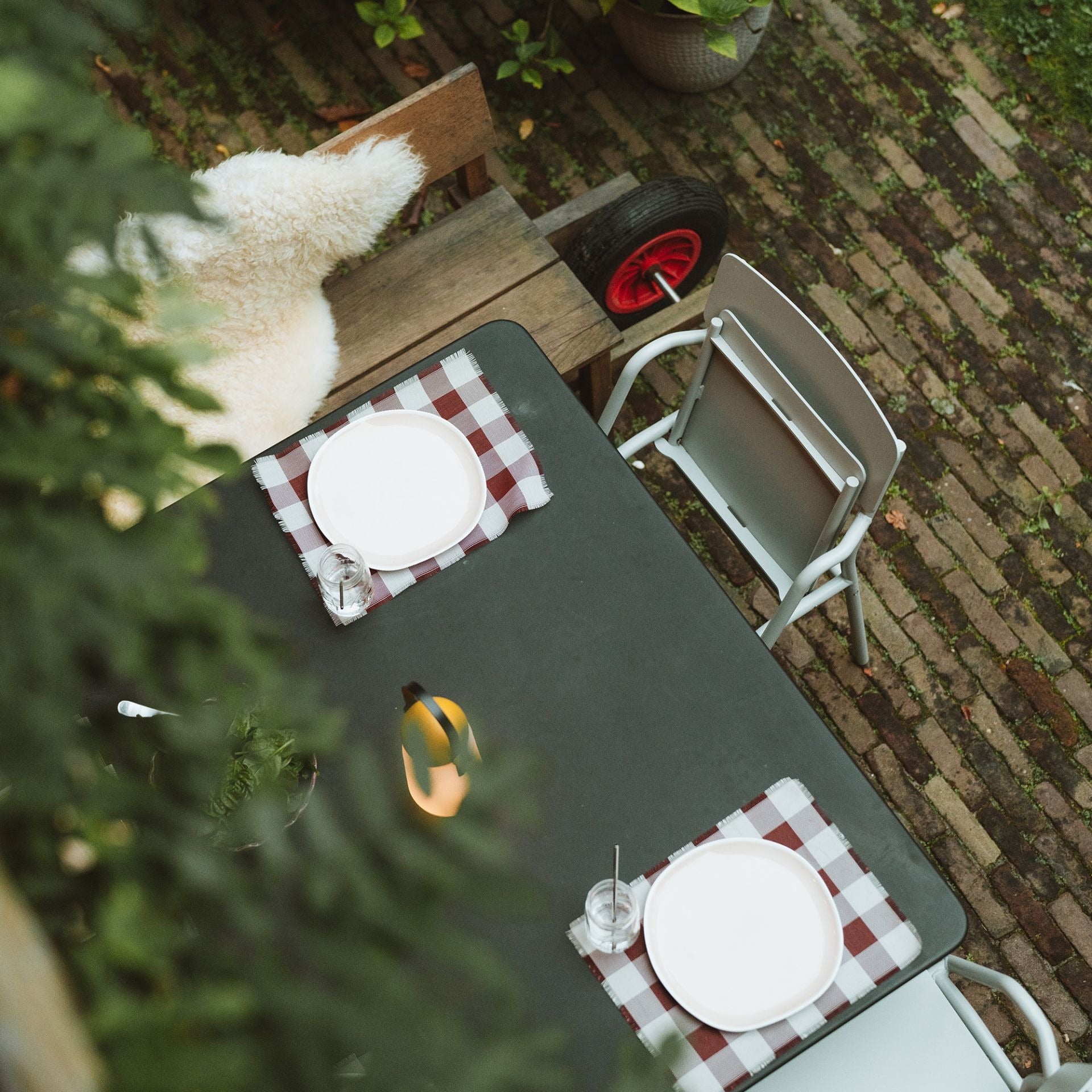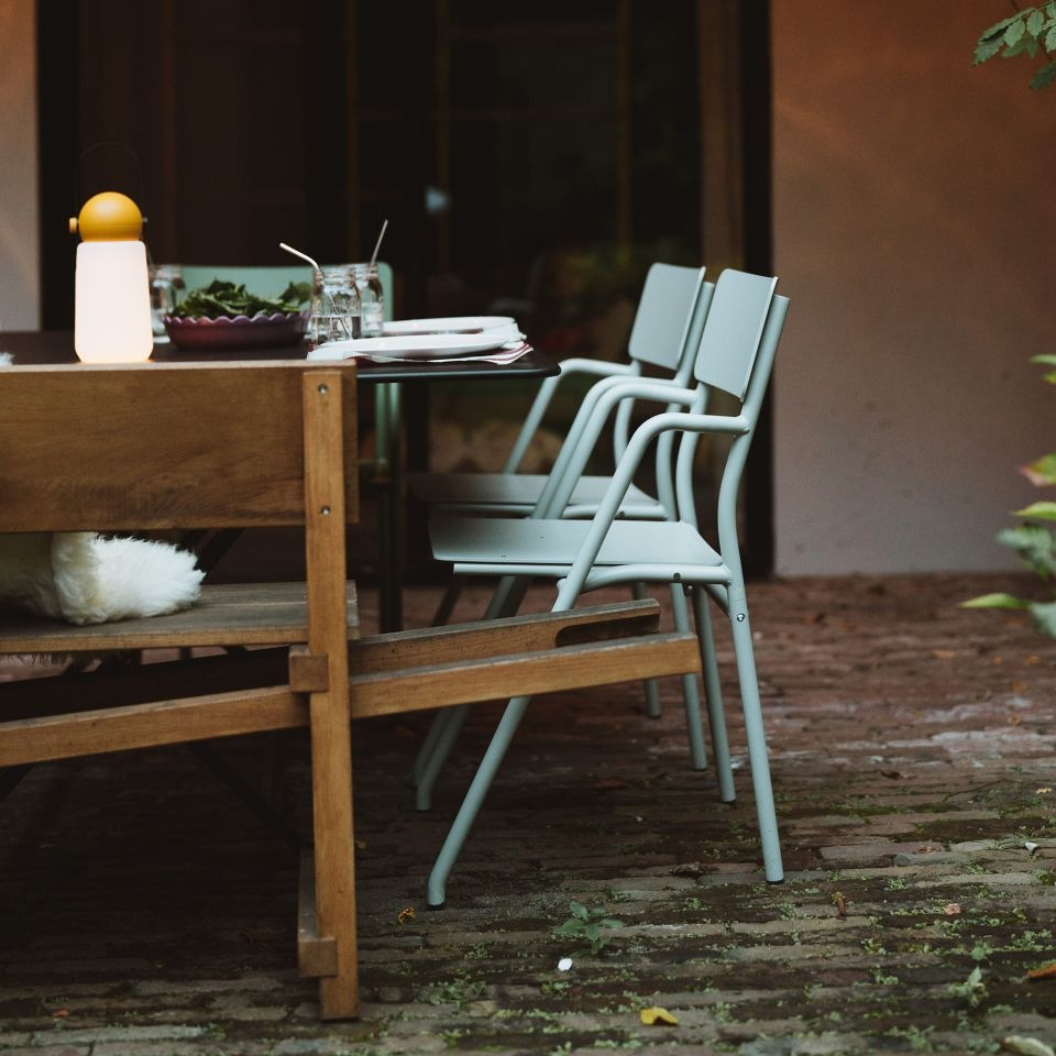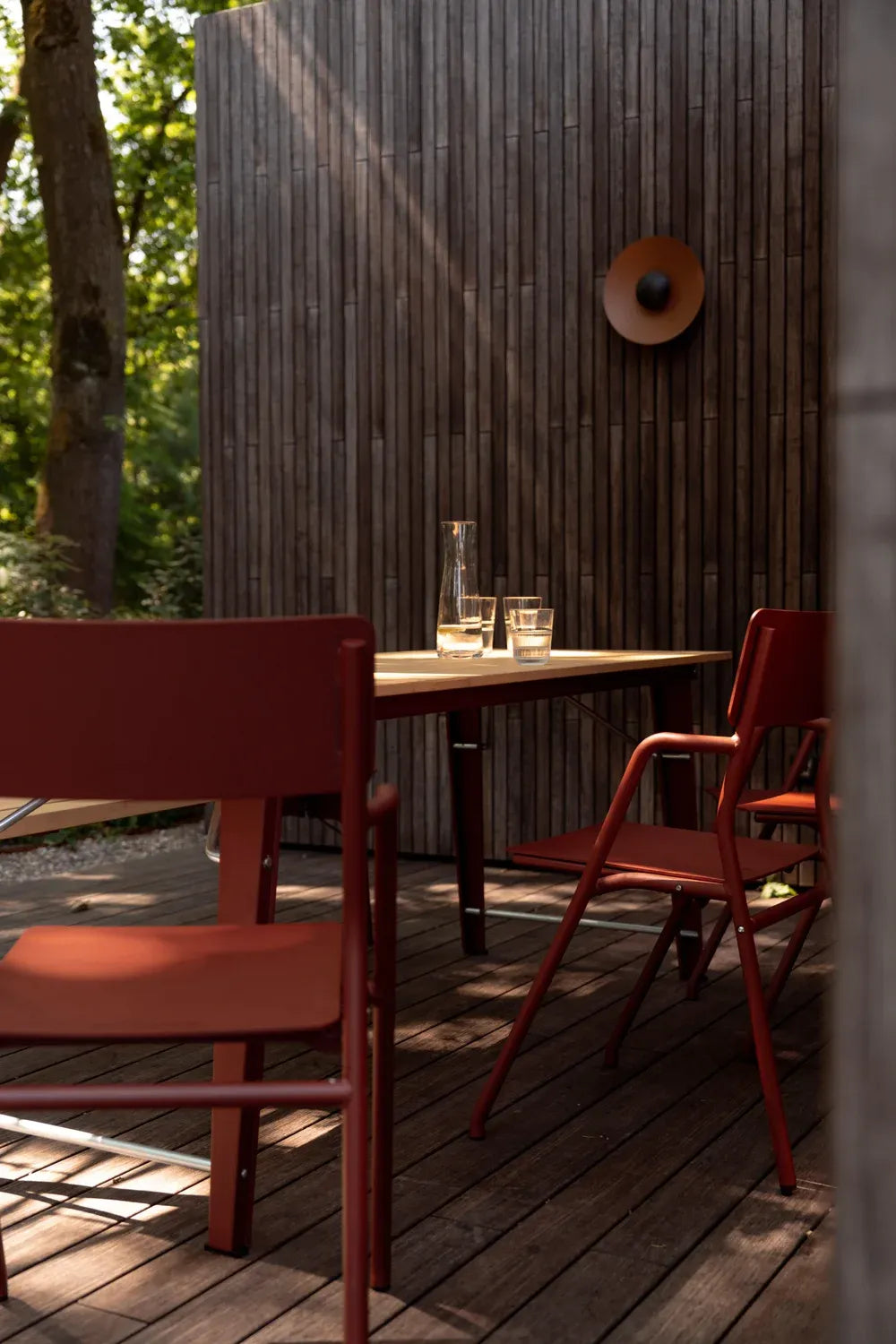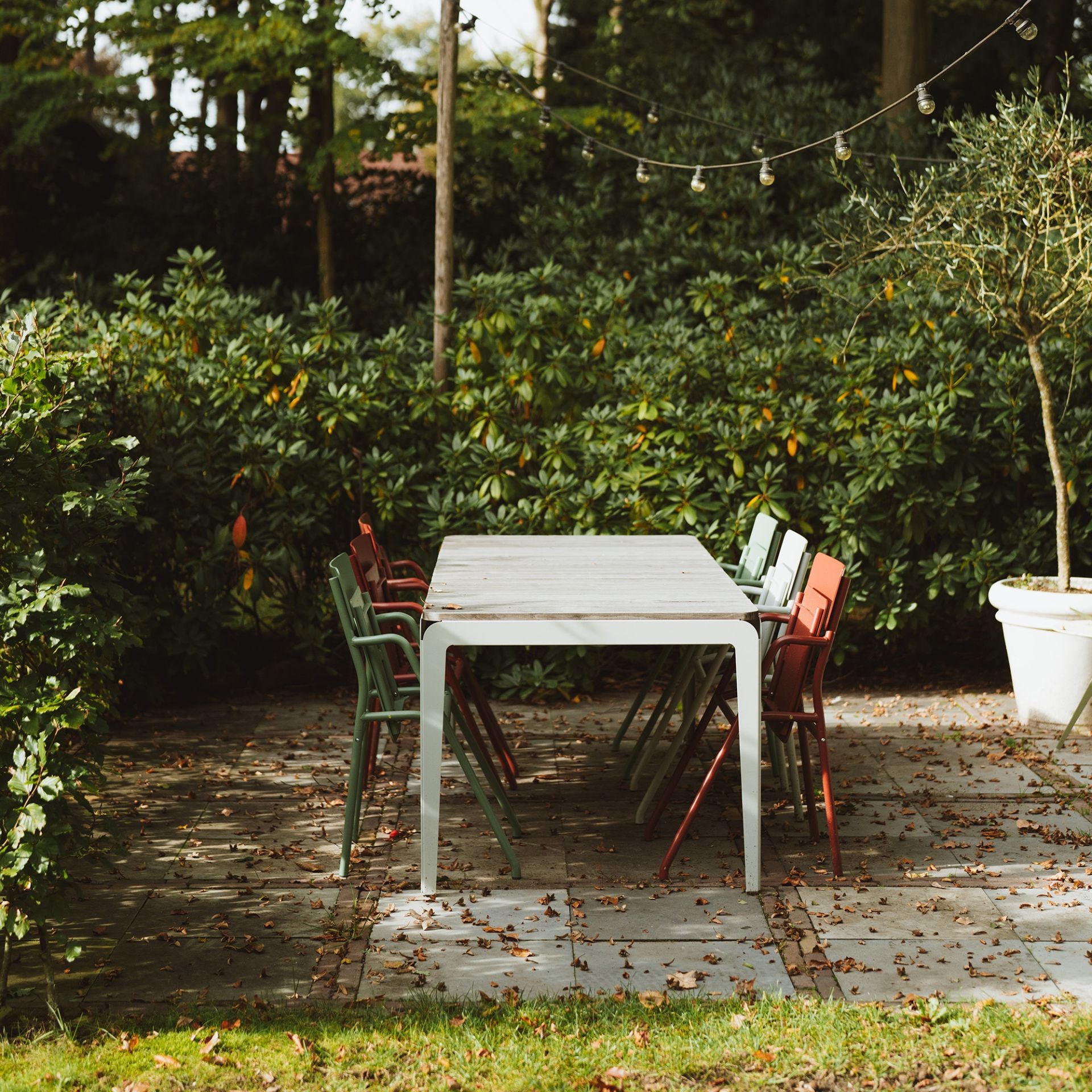 Keep your seat dry with the Flip-up chair. Simply flip up the seat when not in use to shield it from rain and dirt. No need for towels - next time you want to sit outside, the chair is instantly ready. Its slight angle ensures comfort, and the horizontal stackability saves storage space in winter (although the durable material withstands all weather conditions).