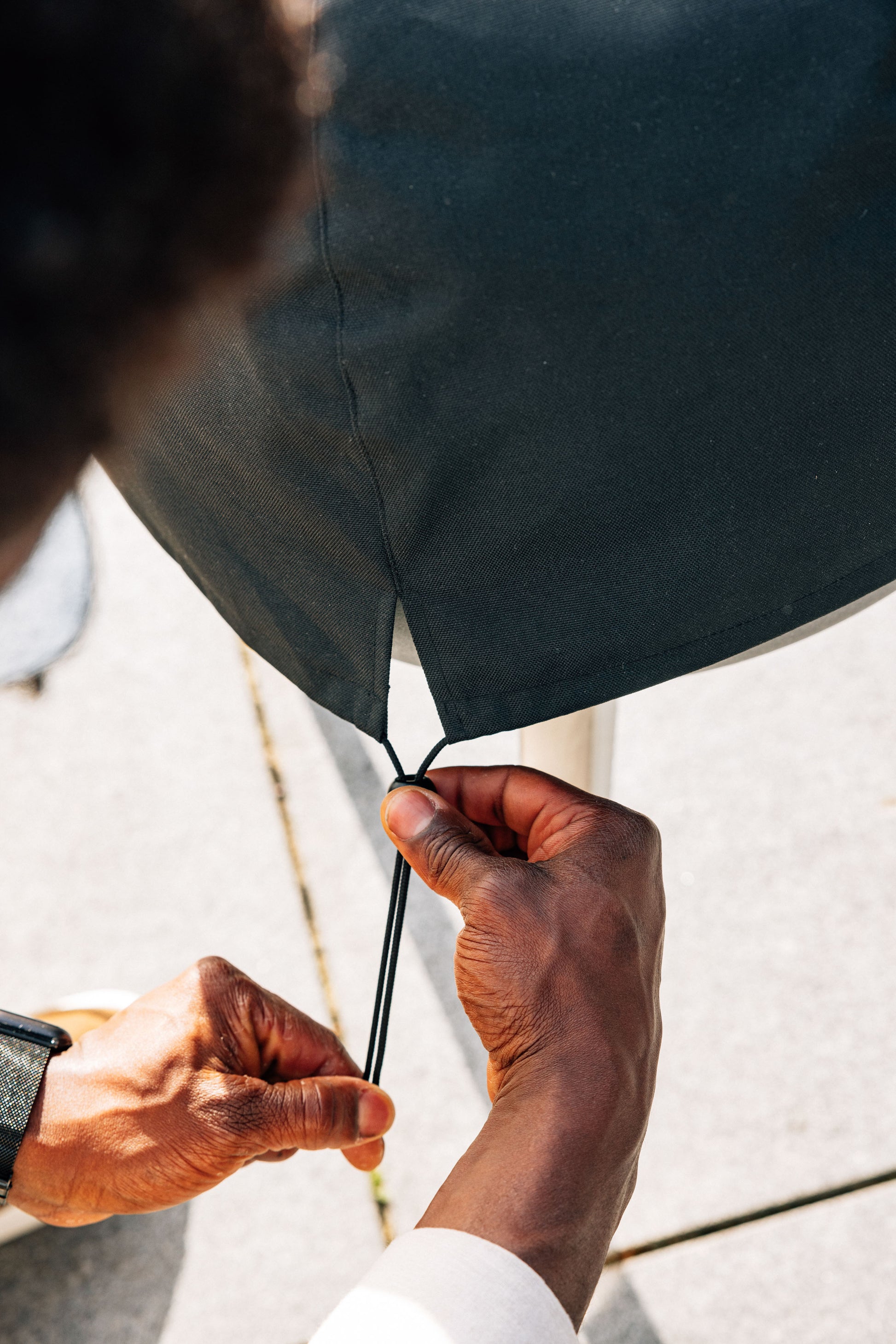 Drawstring with cord stopper for a snug, wind-resistant fit.