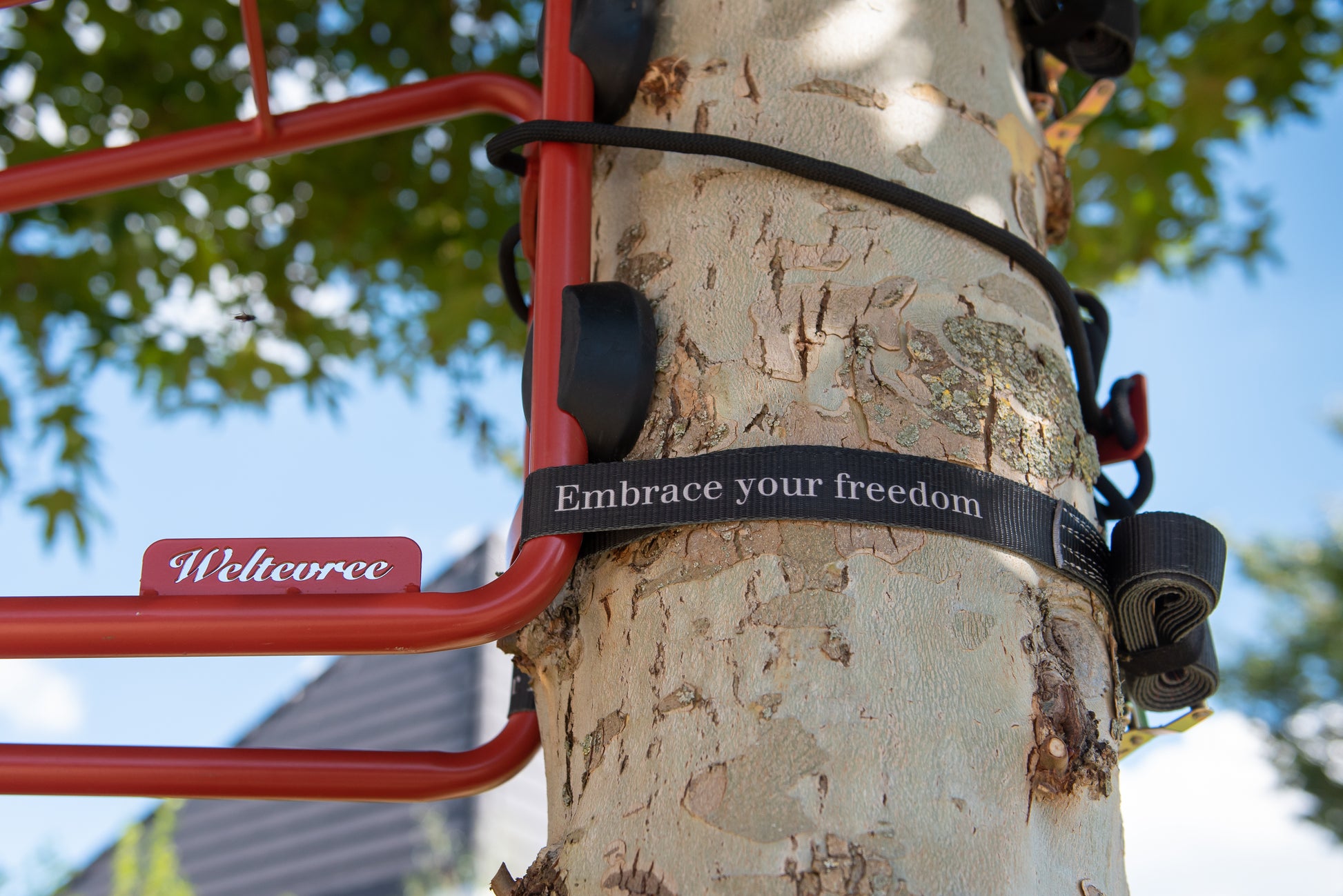Simply attach the Swing to a pole or tree and discover your surroundings in a whole new way. A tree or pole (circumference: 94-204 cm) is all you need to start swinging.