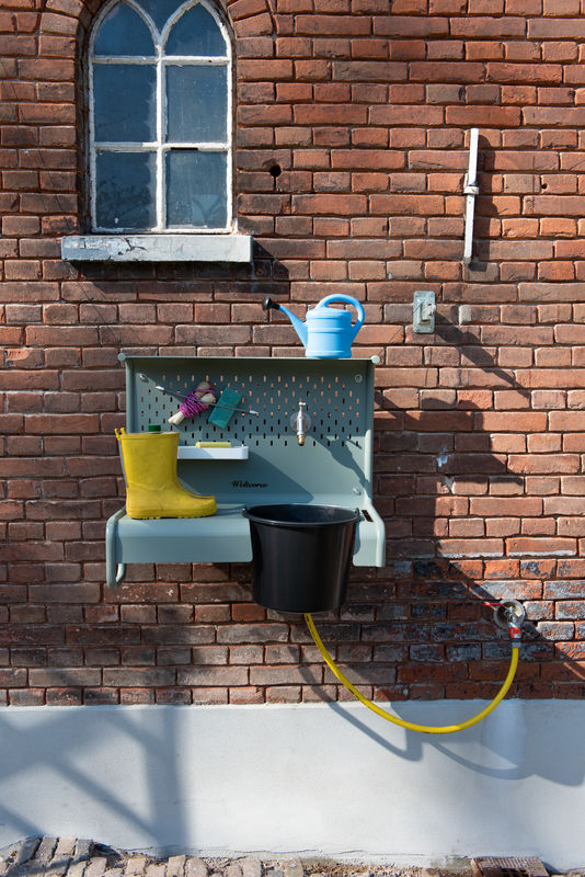 Create useful outdoor counter space right outside your house. All you need is your existing water tap.