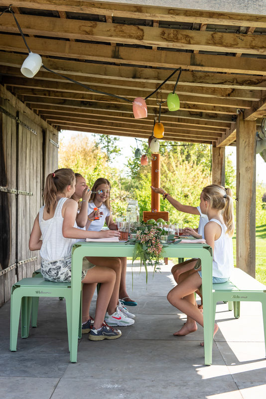 The Bended Table table from Weltevree is the ideal piece of outdoor furniture: thanks to its smart design, it stands stably and wobble-free on any surface, is extremely easy to transport and is also made of fully recyclable material.